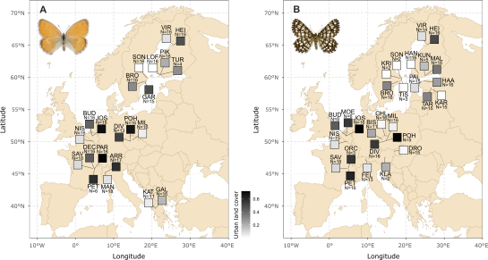 Cities create novel conditions that differ from natural or rural environments, so that special adaptations may be required from individuals that live there. A key question is whether such urban adaptations arise once, and then spread to other cities, or arise repeatedly in different cities. Thomas Merckx, together with a team of international colleagues, studied this in two common European insects: the small heath butterfly and the latticed heath moth. Our analyses suggest that urban adaptations have multiple origins in both species. Yet, the two species’ population histories differ: small heath populations show clear genetic differences, while latticed heath populations are genetically much more similar across Europe.